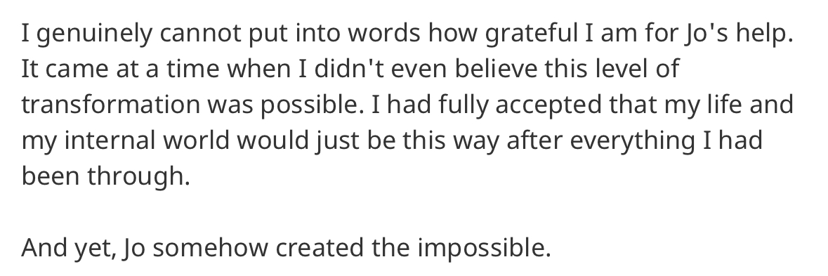 The key to the potency of my work is the deep embodiment and groundedness I bring to my client work, bringing rapid shifts.